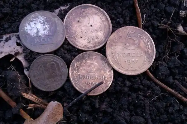 Два билончика времен НЭПа. С чувством выполненного долга, я пошел на выход. Уже в кромешной тьме зацепил еще одну монетку. Вот общее фото всех "сокровищ"
