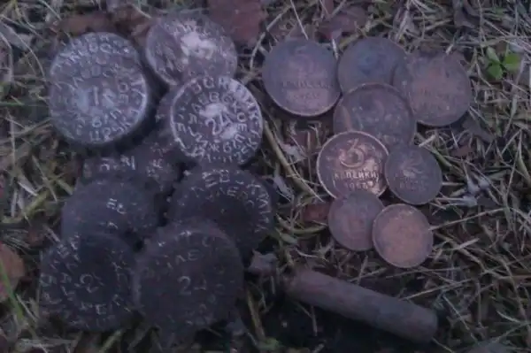 Но, после первой радости, находки закончились. На протяжение часа я выкапывал лишь мусор. Горы алюминиевых пробок и всего-всего..только не монет. Попались пару копеек периода 1961-1991 годов, их фотографировать не стал, ибо у каждого таких в достатке дома)