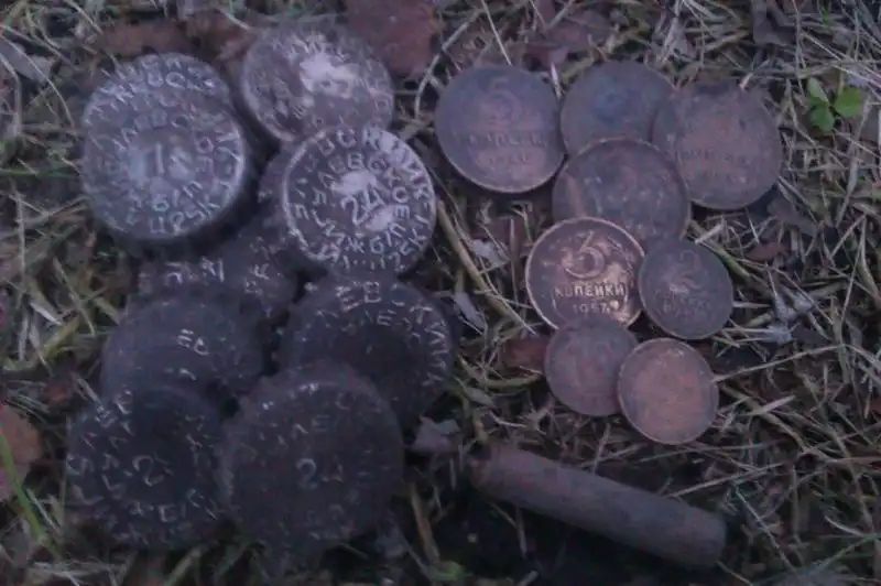 Через пару дней было решено вернуться и более конкретно обследовать этот район поиска) Первые находки пошли "оптом". Под одним из деревьев, кто-то, в конце 50-х потерял целую кучку