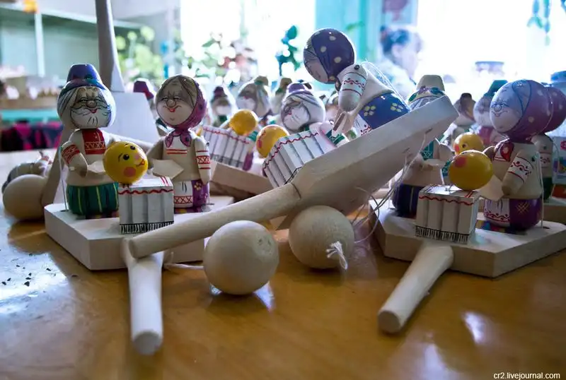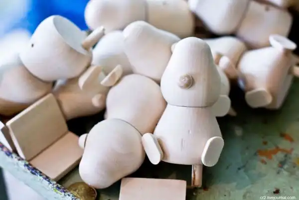 Изготавливают деревянную игрушку из просушенной за 3-5 лет липы. Это мягкое дерево хорошо подходит для резки: