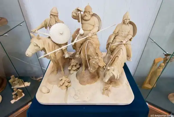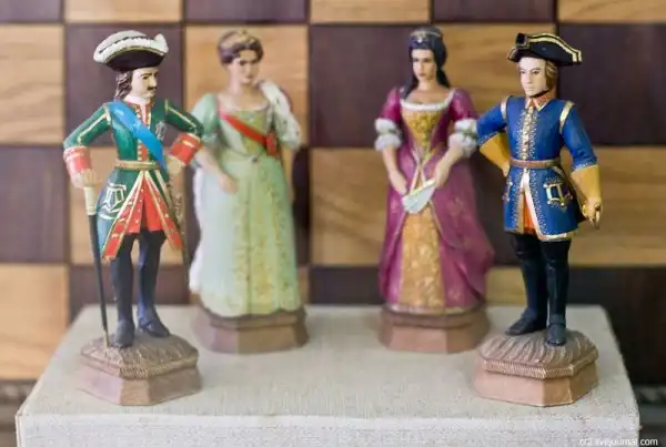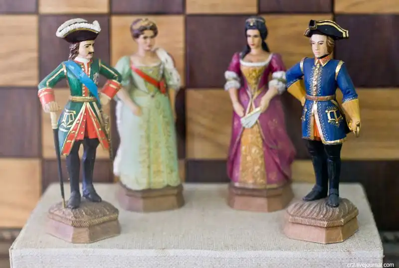 Вырезают мастера и уникальные вещи, как эти шахматы «Северная война». Пётр и Карл XII со своими королевами