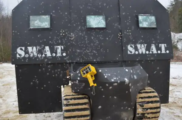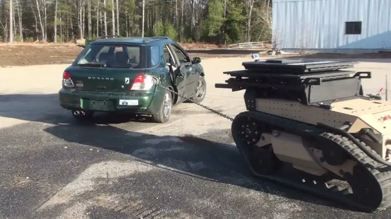 Выталкивание автомобиля с помощью SWAT-Bot из зоны операции.