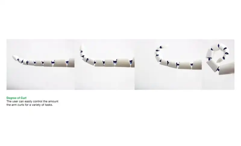 Тайваньская студентка школы дизайна Кэйлин Кау задалась вопросом, а действительно ли удобны в использовании современные протезы? Не практичнее было бы отойти от стандартной анатомии руки и попробовать что-то более практичное, для решения повседневных задач. Поэтому она создала прототип моторизированного щупальца, которое позволит инвалиду легко и просто справляться с проблемами в нестандартных ситуациях.