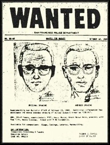 «Убийца Зодиак» зверствовал в Калифорнии в конце 60-х и 70-х годах. Он снимал свои убийства и рассылал в газеты. Он стал одним из самых известных серийных убийц из-за своих кодовых писем в прессу. Он прислал более 10 писем с фотографиями убийств, но хвастался, что убил больше 37. Убийца был назван «Зодиаком» прессой, т.к. его письма были подписаны зодиакальными крестами. Полиция так и не нашла его, и дело всё также числится незакрытым с 1969 года.