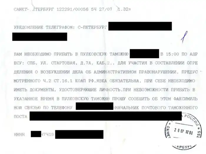 Ну и послал всё это бандеролькой. Как мне потом объяснили, именно это было большой ошибкой: данным отправлением только бумажные изделия можно пересылать. В общем... Через неделю мне приходит телеграмма. Если вкратце, "Явитесь на Таможню, ибо на вас дело заведено".