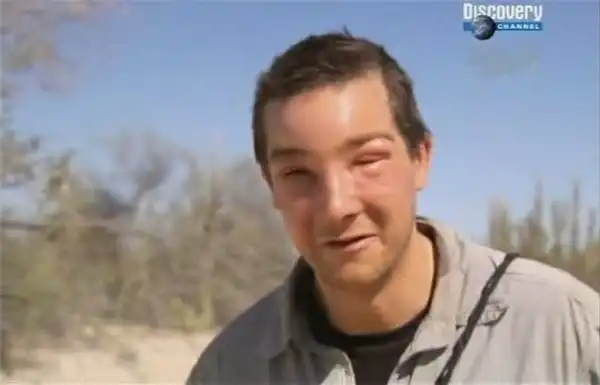 Беар Гриллс очень любит мед, не зря же его имя переводится на русский как «медведь». При этом он уверен, что искать лакомство лучше всего не в продуктовом магазине, а в пчелином улье где-нибудь в мексиканских горах. Операция по извлечению меда прошла достаточно успешно, и экстремал отделался всего лишь одним укусом в лицо. Но тут выяснилось, что у него аллергия на пчелиный яд. Лицо Гриллса стало опухать практически в реальном времени, и вскоре он превратился в карикатурного пришельца из комикса, который мало что видел одним глазом.