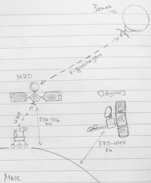 В 2006 году к спутнику Odyssey присоединился MRO - Mars Reconnaissance Orbiter, который сегодня является основным собеседником Curiosity.