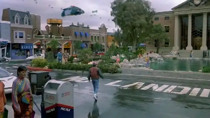 Больше всего с этой точки зрения интересна вторая часть трилогии. В «Назад в будущее 2» главные герои немало времени проводят практически в нашем нынешнем настоящем — в 2015 году. Каким же видели будущее из глубины 1980-х годов Роберт Земекис и команда? Увы и ах! Светлая мечта человечества о летающих машинах, несмотря на старания изобретателей, ученых, автоконцернов и энтузиастов-одиночек, так и осталась мечтой. Киношные просторы бороздят автомобили, распугивающие в небе птиц, а мы пока можем рассчитывать только на наземных автопилотов…