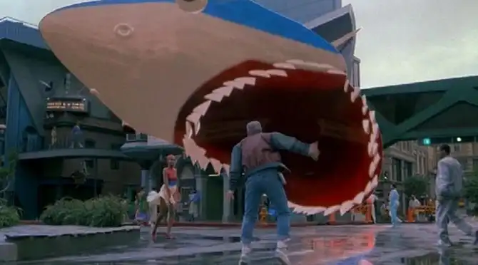 Зато авторы фильма метко спрогнозировали дальнейшее увлечение потомков виртуальным третьим измерением. В одном из эпизодов Марти испугался рекламной голографической проекции с афиши 19-й части «Челюстей». Что ж, у Голливуда еще есть пару лет, чтобы быстренько снять оставшиеся 17 частей хоррора про кровожадную акулу, но 3D вполне себе успешно «прокатывается» даже в белорусских кинотеатрах. Пока, правда, не обойтись без специальных очков, но успехи есть и у почти настоящих голограмм.