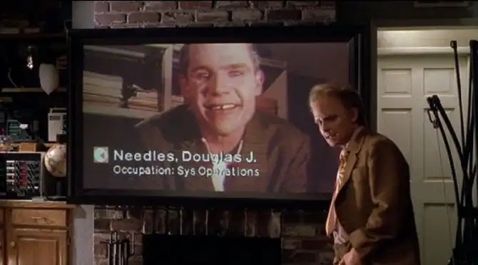 Несколько раз по ходу фильма док пользуется штуковиной, похожей то ли на бинокль, то ли на фотоаппарат. Когда в нее смотрят, устройство подсвечивает зелеными квадратами лица людей. Чем не глупая цифровая «мыльница» или современный умный телефон с функцией распознавания лиц? Индустрия пошла дальше — отслеживать можно даже морды котов.