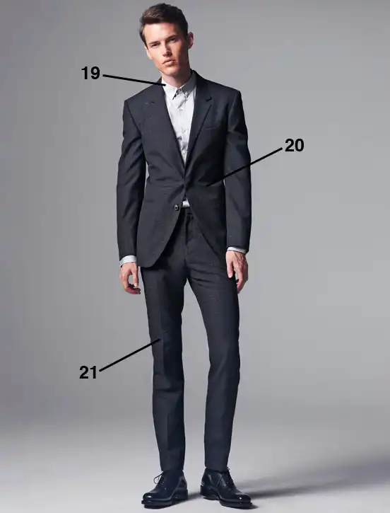 31. Манжет рубашки должен примерно на 1,5-2 сантиметра выступать за рукав пиджака. Если это не так, то лучше поищите другой размер. Только сэкономите потом на портном.