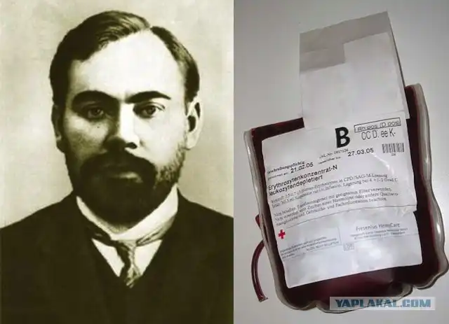 Alexander Bogdanov (1873 — 1928). В 1924 году Богданов начал свои опыты по переливанию крови, в поисках вечной молодости, или частичного омоложения. После одиннадцати переливаний, его зрение улучшилось. Позже, в 1928 году, при очередном переливании ему досталась кровь человека больным малярией и туберкулезом. Александр, умер в мучениях, так и не обретя вечную молодость.