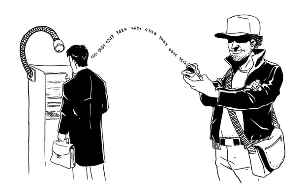 Никогда не знаешь, следят за банкоматом или нет, какая там система безопасности. Существует несколько способов это выяснить. Самый простой из них — прикрепить к банкомату объявление, что он не работает, или повесить на картоприёмник наручные часы.