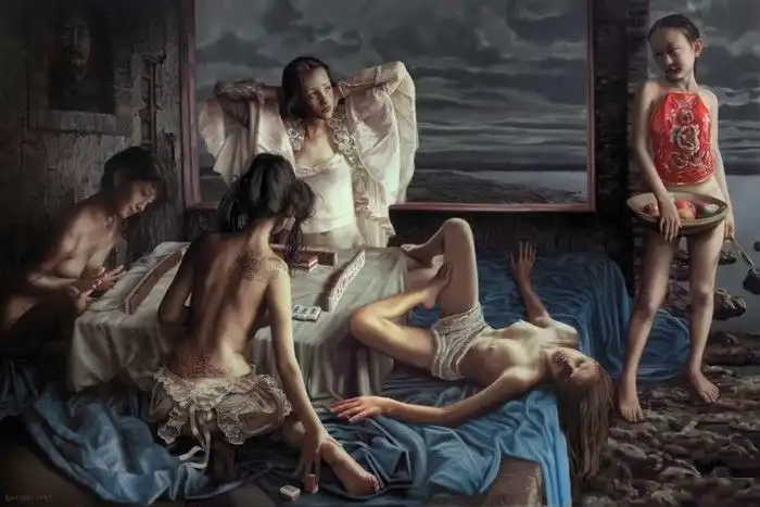 Эта картина очень необычная, на ней изображены четыре девушки, играющие в мацзян (маджонг). В картине скрыт глубокий смысл.