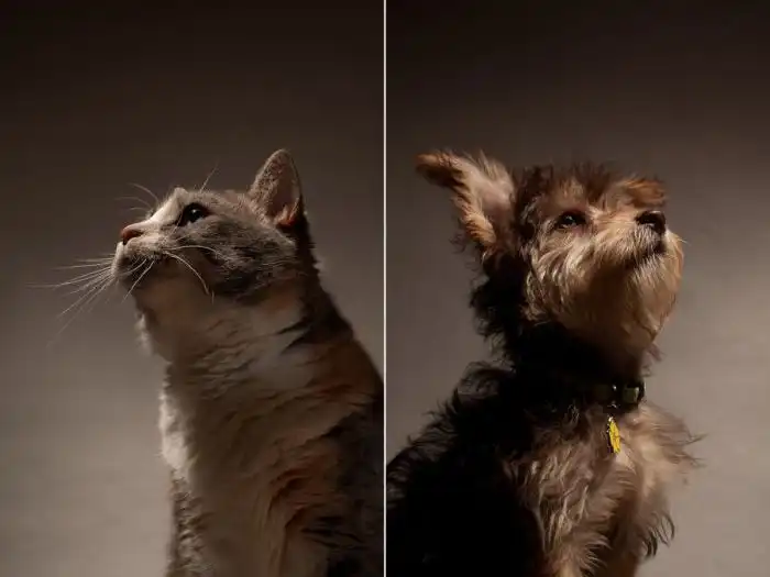 Собаки и кошки не различают оттенков серого. Зато они воспринимают разные оттенки синего и зелёного. Поле зрения у собак шире, чем у человека, но они не могут видеть так далеко вперёд, как мы.
