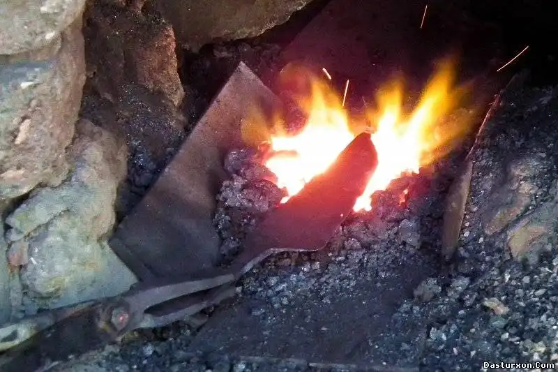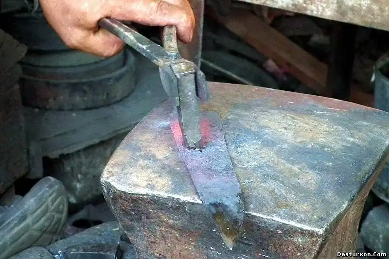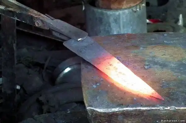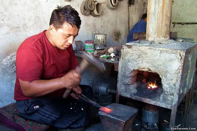 Войдя внуть я был приятно удивлен. За наковальней сидел мастер Абдумуталиб, с которым я давно познакомился на одной из выставок прикладного искусства в Ташкенте.