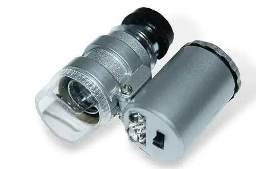 60-кратный микроскоп укреплен на специальном защитном чехле (входит в комплект), который надевается на айфон поверх фотообъектива. Микроскоп состоит из собственно увеличивающего блока и специального микроосветителя, который питается от трех плоских LR1130-батареек и имеет три светодиода: два — обычного «белого» света, третий — ультрафиолетовый. Изначально микроскоп создавался для контроля банкнот, но со временем превратился в удобное приспособление для микросъемки. Весит прибор 18 г.