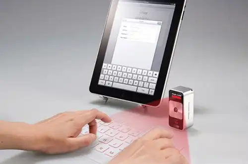 В этом году на рынке появился новый класс устройств ввода — проекционные лазерные клавиатуры высокой четкости изображения, предназначенные для подключения к смартфонам и планшетам. Подключение осуществляется через USB, Bluetooth или несколько устаревший морально, но все еще работоспособный ИК-порт. Предполагается, что с помощью лазера на гладкую поверхность (например, стол) проецируется стандартная клавиатура с расстоянием между центрами клавиш 19 мм. Распознающий движения пальцев датчик опознает до 350 «нажатий» в минуту