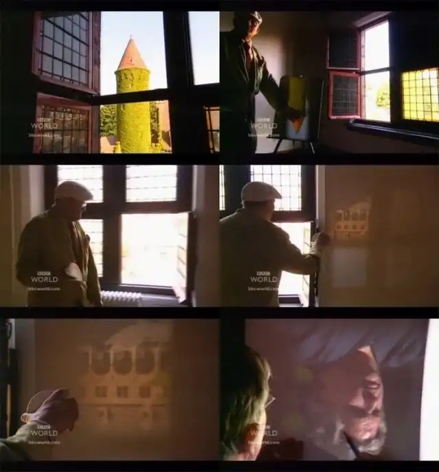 Может они пользовались той самой камерой люсидой? Она была запатентована в 1807 году Вильямом Хайдом Волластоном. Хотя, на самом деле, такое устройство описывается Йоханесом Кеплером еще в 1611 году в его труде Dioptrice. Тогда может быть они пользовались другим оптическим устройством — камерой обскурой? Она ведь известна еще со времен Аристотеля и представляет собой темную комнату, в которую сквозь небольшое отверстие попадает свет и, таким образом, в темной комнате получается проекция того, что перед отверстием, но в перевернутом виде. Всё бы ничего, но то изображение, какое получается при проекции камерой обскурой без линзы, мягко говоря, некачественное, оно не четкое, для него требуется очень много яркого света, не говоря уже о размерах проекции.