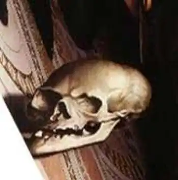 Напоследок ещё хотелось бы показать полный, простите, отвал башки. Полотно авторства Ханса Хольбейна Младшего «Послы». Оно написано в 1533 году! А на нём — оптическая иллюзия — шутка Хольбейна, человеческий череп, изображенный таким образом, что он будет виден в нормальной перспективе только если подойти к картине сбоку и вскользь на неё смотреть…
