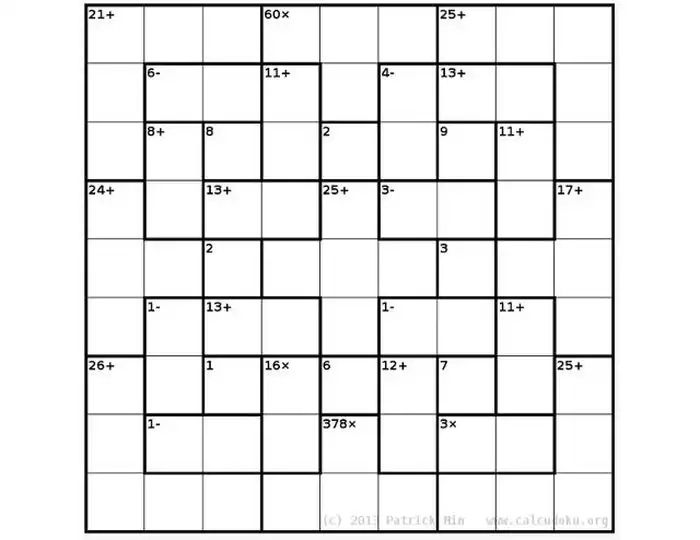 Этот вид судоку похож на сум-до-ку, но, во-первых, для вычисления значения клеток используются любые арифметические операции, а не только сложение, во-вторых, поле может быть квадратом любого размера (количество клеток не ограничено), и в-третьих, в отличие от судоку, здесь необязательно должны присутствовать подсказки от 1-го до 9-ти в каждом квадрате 3×3. Такие задачи разработал японский учитель математики Тетсуя Миямото.