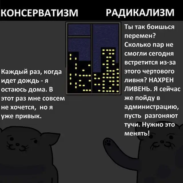 Интересный комикс, показывающий различные типы взглядов людей на одну и ту же проблему. А к какому из этих типов вы относите себя? ;)