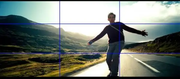 Для остальных поясним: кадр делится на три равные части по горизонтали и ещё на три по вертикали. При пересечении этих линий образуются четыре точки, которые профессионалы называют «узлами внимания». Человеческий мозг так устроен, что нам комфортней видеть главный объект фото или кинокадра именно в одной из этих точек – а вовсе не посередине, как может подумать дилетант.