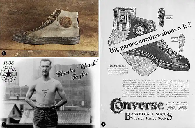 1. Одни из первых конверсов. 2. Мистер Чак Тейлор, он же Мистер Баскетбол, он же главный евангелист оллстаров. 3. Конверсы с инновационной (ну, на тот момент) технологией защиты косточки.