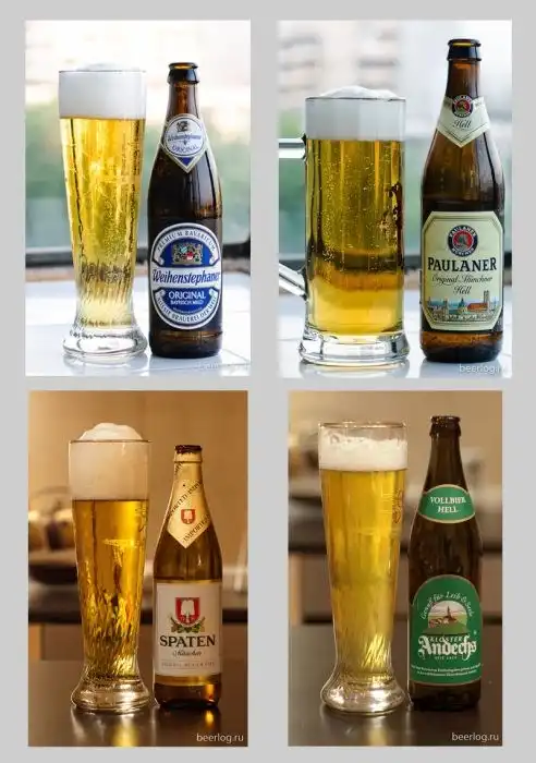 Примеры: Spaten Munchner Hell, Weihenstephaner Original, Hofbrau Original, Paulaner Original Munchner, Kloster Andechs Vollbier Hell и т.д.