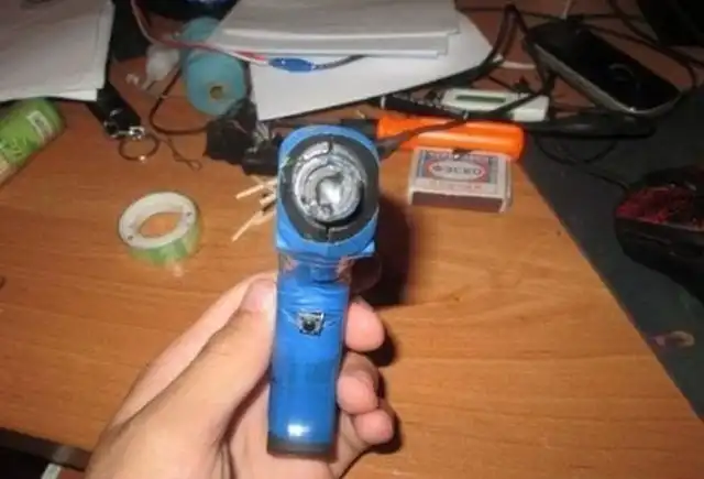 Для этого нужен источник энергии в 3,6 вольт, старый клеевой пистолет, изолента(обязательно синяя), выключатель, несколько проводков, два резистора по 1 Ому, два конденсатора и… (голосом Задорнова) Наберите воздуха в грудь!!!