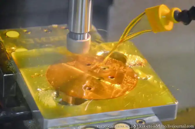 Затем медаль попадает в ванну прецизионно-электроэрозионно-проволочно