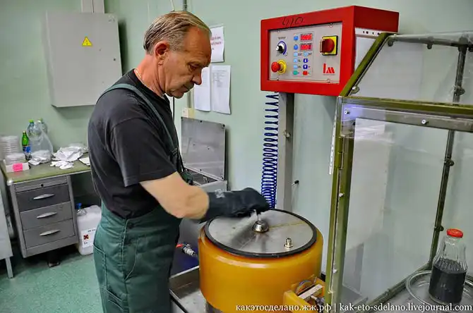 Попросту говоря, корпус медали трется о металлические шарики разного размера в воде с моющим средством.