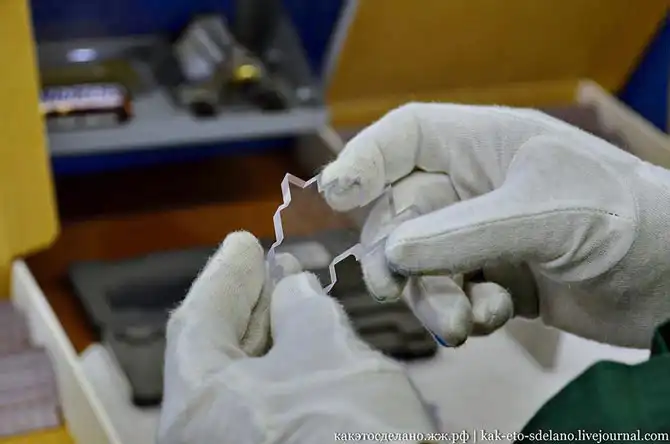 Чтобы посмотреть на этот процесс возьмем этот кусочек поликарбоната, поднимемся на третий этаж завода и пройдем в секретное помещение через эти двери.