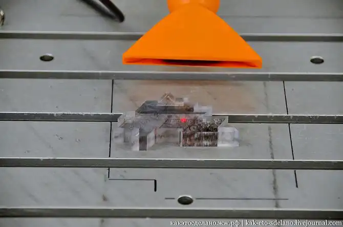 Желтая штуковина – отвод продуктов горения при лазерной гравировке.