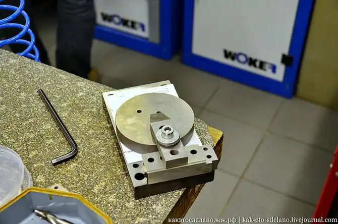 Затем «шайба» помещается в такое приспособление, надежно в нем закрепляется