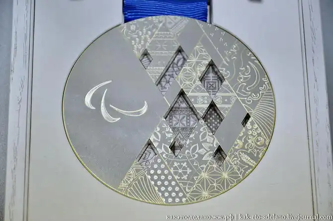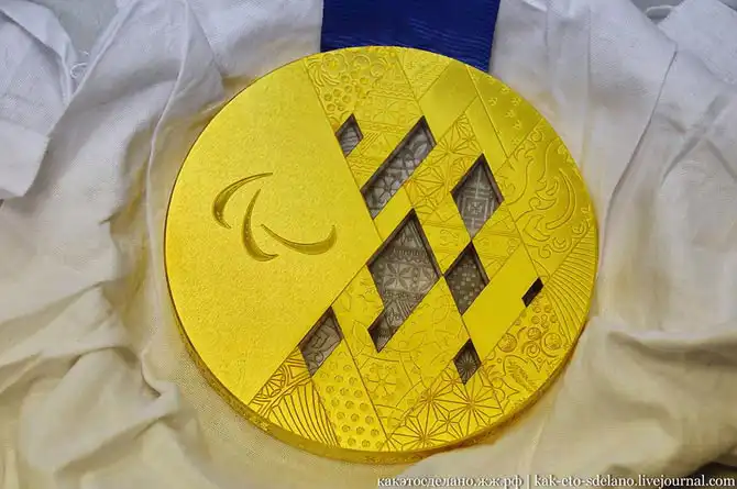 Обратите внимание на шрифт Брайля и на то, что в этих медалях нет зазоров, как в обычной олимпийской медали на месте большого кристалла.