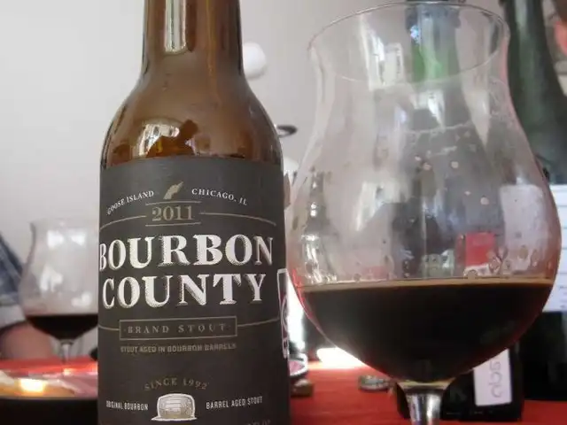 Bourbon County Stout варят в Чикаго, в пивоварне Goose Island и выдерживают в течение двух лет в бочках из-под 18-летнего бурбона. Он обладает приглушённым шоколадным привкусом и крепостью13%.