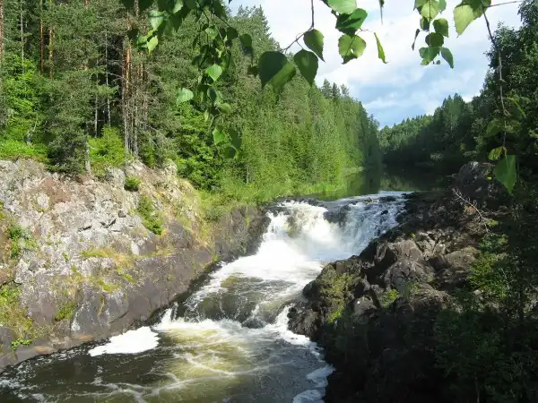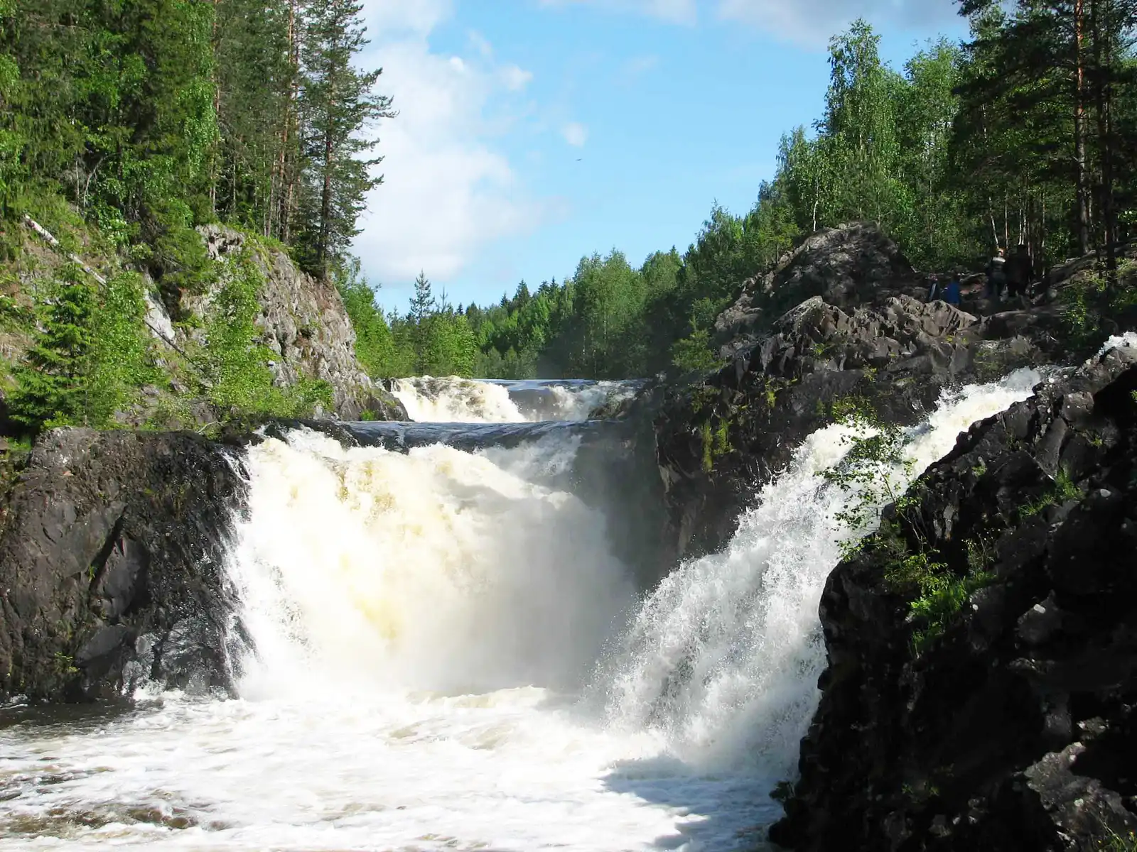Водопад Кивач - природная жемчужина Карелии. Кивач относится к геоморфологическим памятникам природы федерального ранга. Водопад является третьим по величине равнинным водопадом Европы. Вода падает четырьмя уступами с высоты 10,7 м.