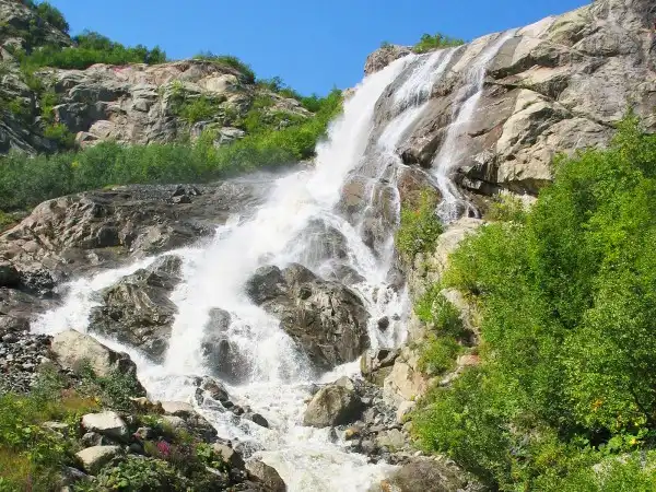 Еще один выдающийся водопад - Зейгеланский водопад. Это уже второй по высоте водопад в России и во всей Европе. Высота каскада, это величина примерная, составляет 600 метров. Данные неточные, поскольку их получили в результате исследования карт местности. Водопад Зейгалан находится высоко в горах и, говорят специалисты, носит пульсирующий характер. По мнению большинства, сток водопада напрямую зависит от температуры окружающего воздуха. И самый большой сток появляется в августе каждого года. Во время прохладных сезонов на высоте четыре километра над уровнем моря прекращает таять ледник, в это время на месте красивейшего водопада остаются лишь натеки на горах. Большой Зейнеланский водопад находится в Северной Осетии.