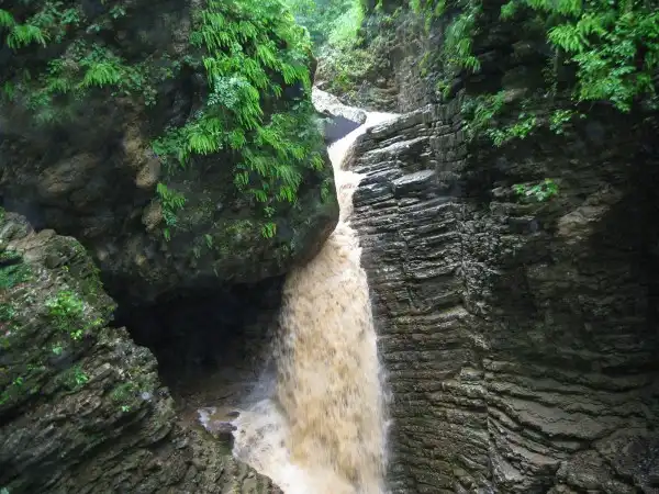 Интересной природной достопримечательностью может похвастаться Моргаушский район Чувашской республики. Водопад был обнаружен в 1999 году, тогда высота основного каскада составляла около 10 метров, он был гораздо шире, но глинистая почва сделала свое коварное дело, постоянно размываясь и обваливаясь, уменьшила высоту основного водопада примерно до 4-х метров. Нижние каскады были разрушены, намного уменьшившись в размерах.