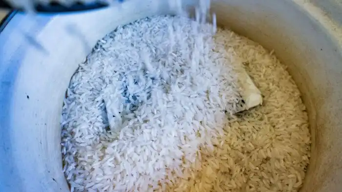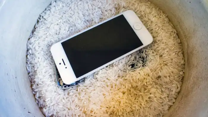 Вместо фена нам понадобится обычный рис. Берем кастрюлю побольше и посыпаем дно рисом. Не забываем х*йнуть риса внутрь аппарата. Фокус в том, что ночью на рис сбегутся китайцы и все починят рис отлично впитывает воду и снижает влажность. Если в вас так и не нашлось отвертки, айфон можно закопать и неразобранным, с вынутым держателем для сим-карты.