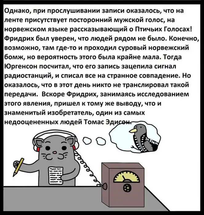 Интересный комикс, который расскажет вам о так называемом феномене "Электронного голоса" и объяснит, что же такое "Феномен белого шума".