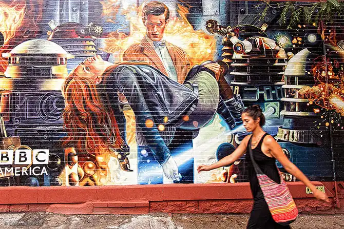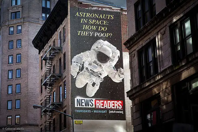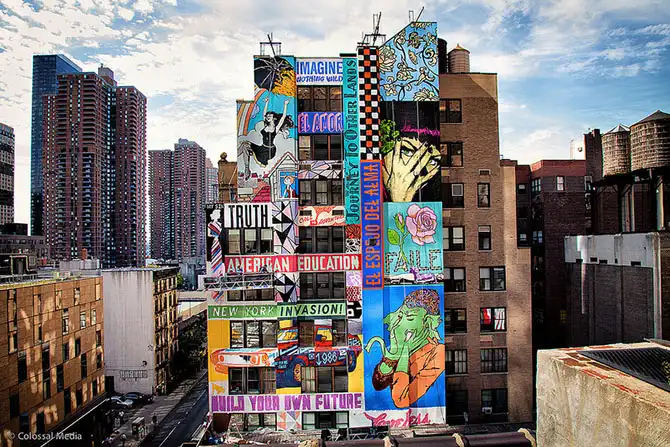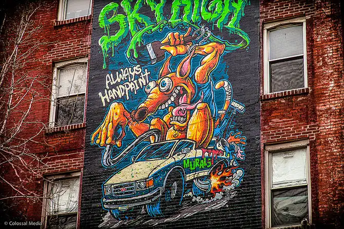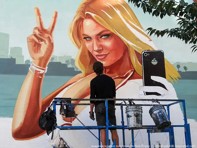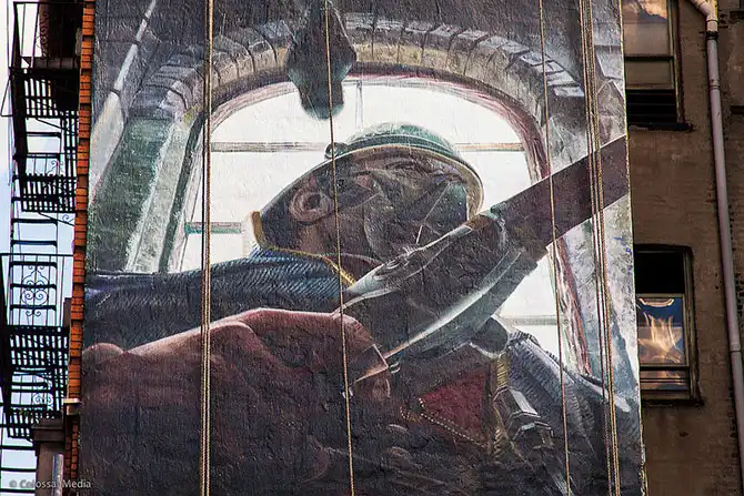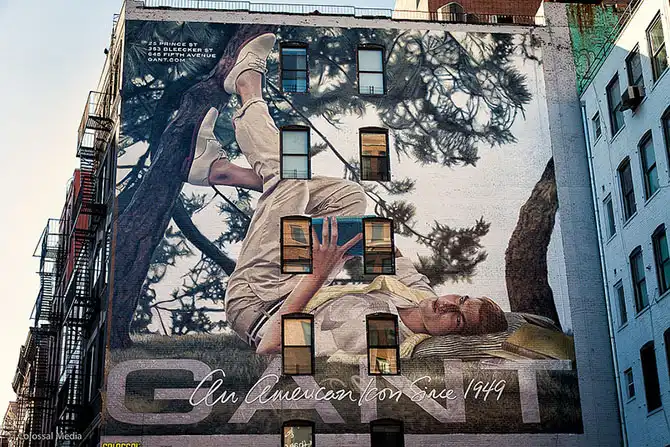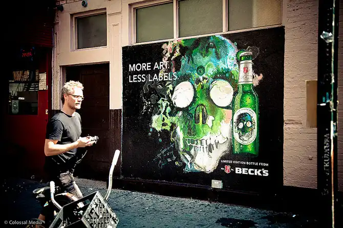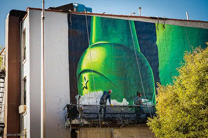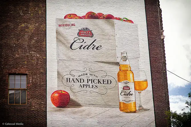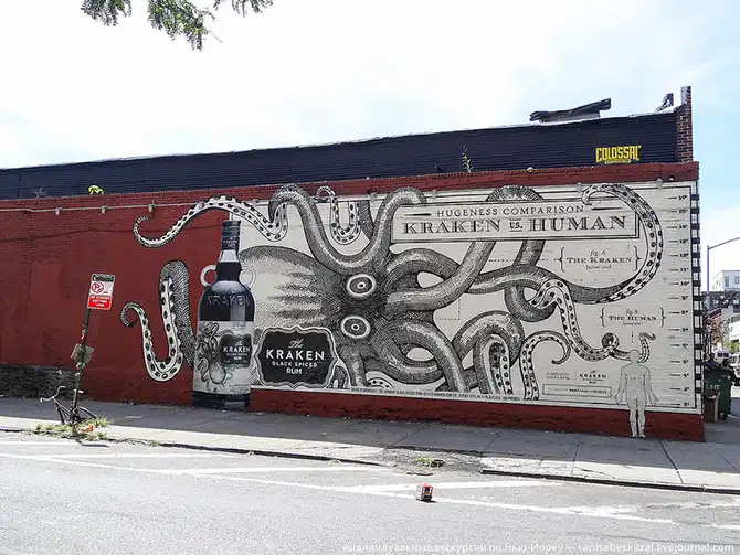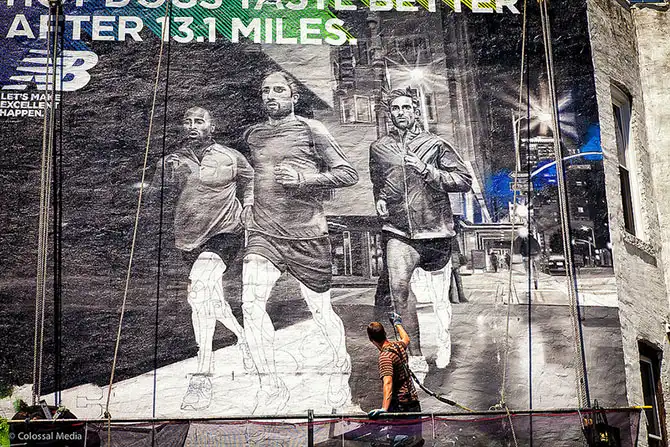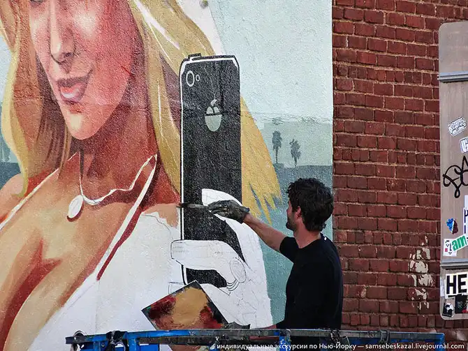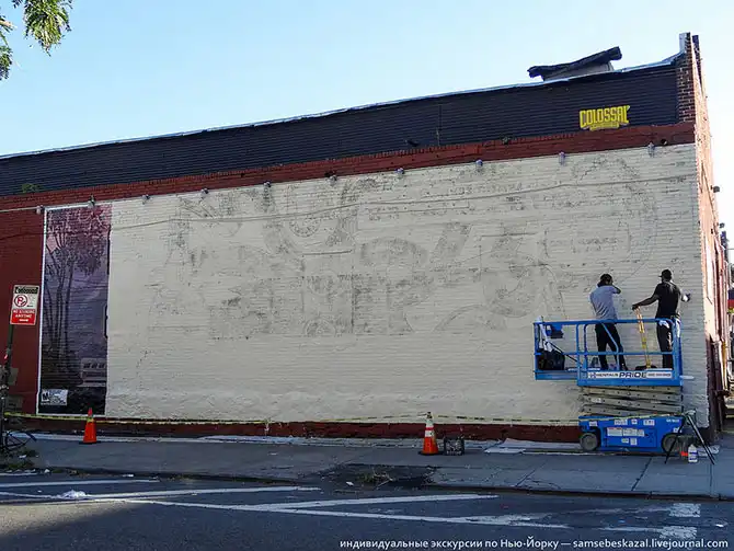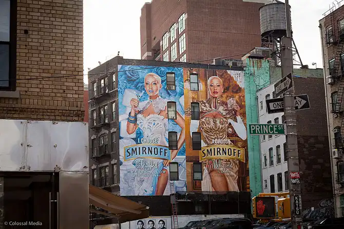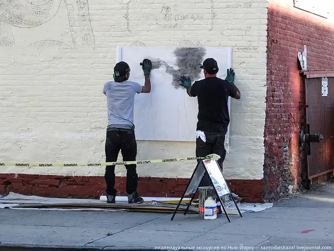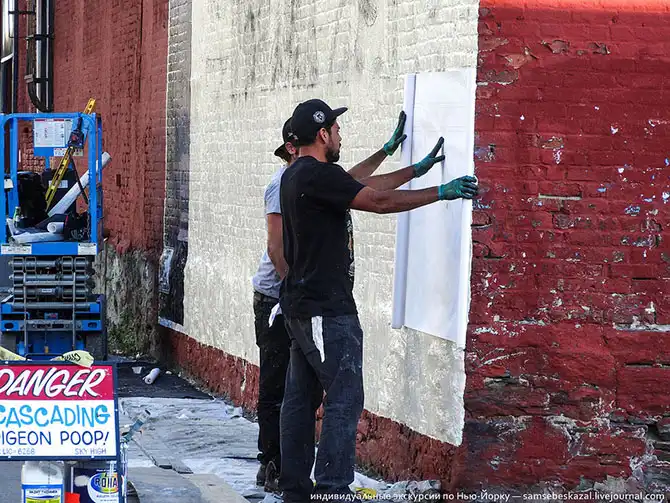 Ее новизна, конечно, очень относительна. Скорее это хорошо забытое старое. Особенно для Нью-Йорка, стены домов которого когда-то в изобилии были покрыты сделанными от руки рекламные объявлениями. Да, они были не столь красивы и стильны, как современные, но техника их исполнения была точно той же. Банки с краской, кисточки и валики, люлька, подвешенная на веревках и художник внутри, методично наносящий огромное изображение мазок за мазком.