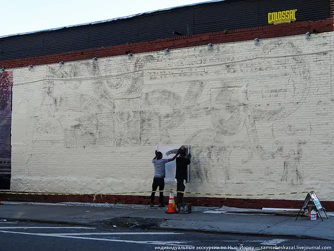 Еще немного их нью-йоркских работ. Узнаете место? Популярные стены перекрашивают раз чуть ли не каждую неделю.