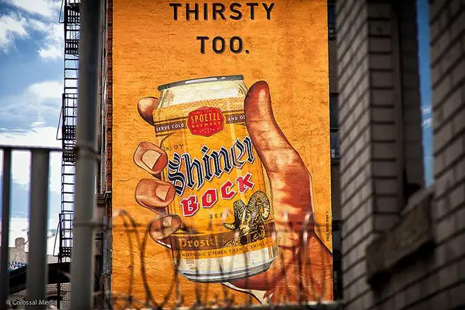 Пик популярности рисованной рекламы пришелся на двадцатые-сороковые годы прошлого века. Тогда рисовали много и до сих пор эту выцветшую от времени рекламу можно увидеть на многих нью-йоркских зданиях. Потом появились технологии широкоформатной печати и винил, которые убили ручной труд и сделали наружную рекламу массовым продуктом.