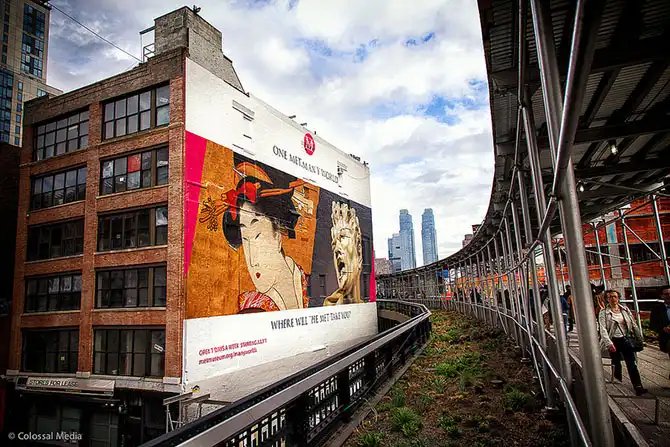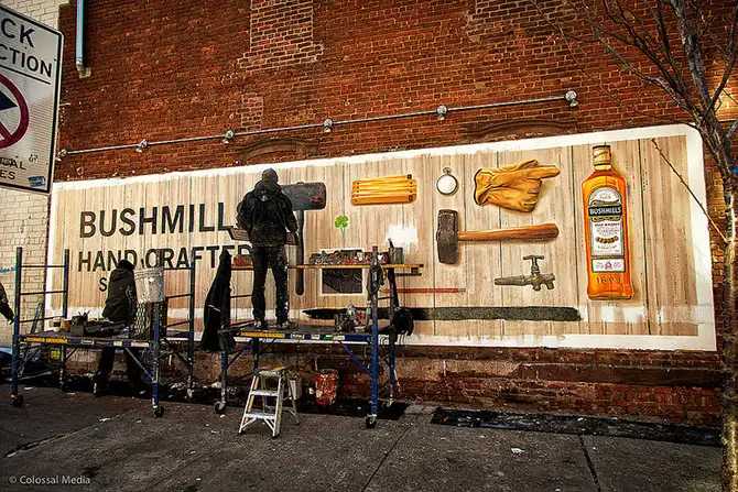 Одним из крупнейших изготовителей рисованной рекламы в Нью-Йорке является компания Colossal media, которая была основана в 2004 году тремя друзьями. Сегодня они компания с многомиллионными оборотами, работают по всей стране, и помимо Нью-Йорка в списке Colossal media еще 18 городов. В их штате работает 30 профессиональных художников. Компания является не просто художественной мастерской, а полноценным рекламным агентством. Они сами ищут заказчиков, предлагают идеи рекламных компаний, да и большинство поверхностей, на которых они работают, принадлежит им самим. Именно они смогли вернуть интерес рекламодателей к незаслуженно позабытой технологии. Стоимость одного проекта варьируется от 5 000 до 100 000 долларов и зависит от площади и сроков.