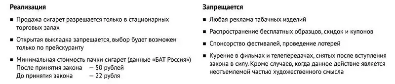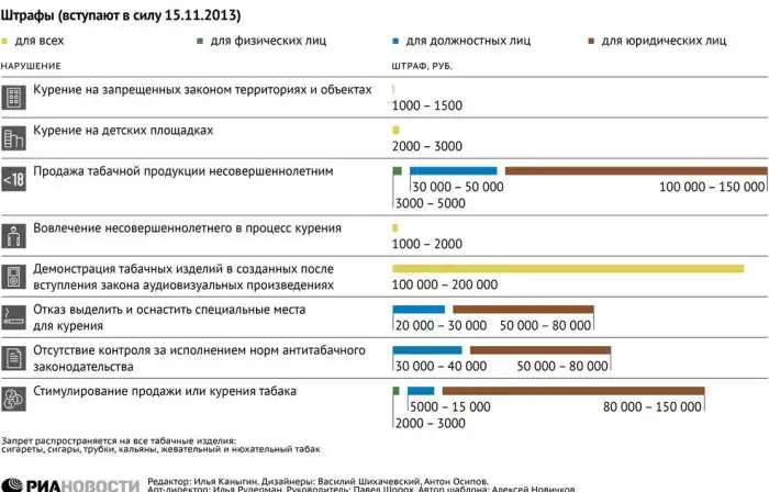 С 15го ноября 2013 года в силу вступил законопроект о новых штрафах за курение в неположенных местах, пропаганду курения, и продаже табачных изделий в не предназначенных для этого местах.