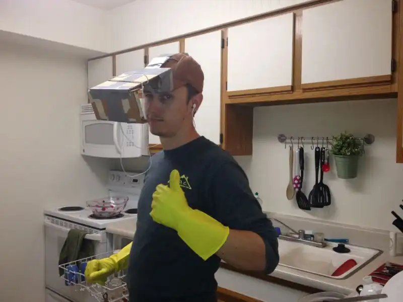 Мытье посуды или уборка в квартире - невероятно тоскливое занятие, которое большинство из нас откладывают на потом. Меня, к примеру, просто жаба давит убивать на это занятие бесценное время, поэтому без подкастов или музыки я этим не занимаюсь. Оказывается, можно пойти дальше и соорудить мультимедиа-шапку своими руками из подручных материалов.