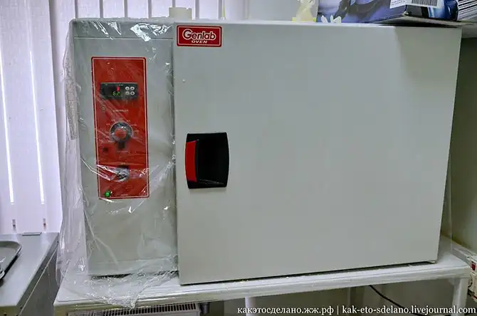 Это печка, в которой плавится воск, послуживший дополнительным материалом при печати. Температуру можно видеть на дисплее.