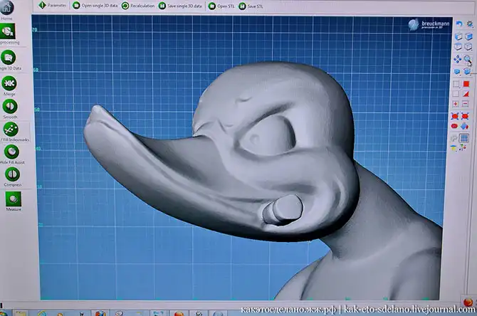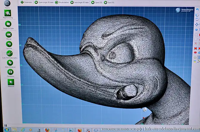 Кстати, будущая модель не должна быть глянцевой, иначе ее проблематично будет отсканировать. Эта утка уже была отсканирована, до этого она имела матовую поверхность.